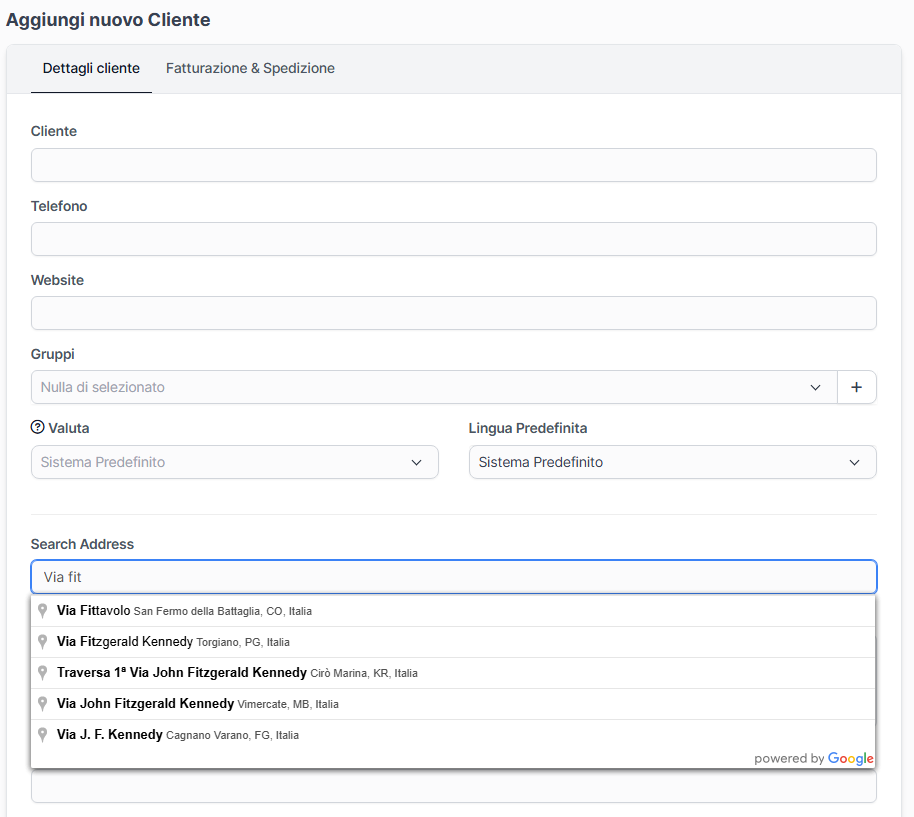 Questo modulo integra la funzione di completamento automatico di Google Maps per acquisire, memorizzare e gestire automaticamente la localizzazione e semplificando l'inserimento dei dati in tutto il sistema.