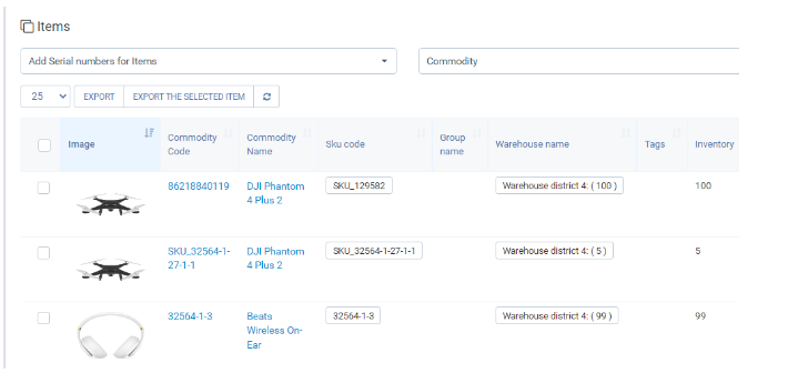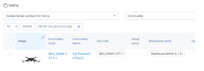 Mostra i prodotti con inventario > 0 e con un numero sufficiente di numeri di serie. Consente di aggiornare i numeri di serie di questi prodotti.