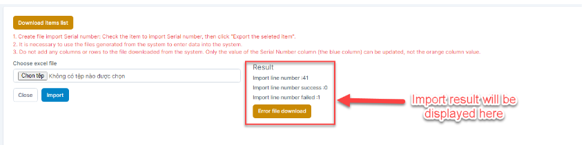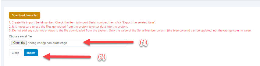 Step 4 – Apri il file scaricato e aggiorna i numeri di serie nel file → seleziona il file e clicca Importa.